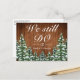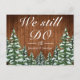 Cartão postal de convite de aniversário de casamento "Nós Ainda Celebramos". Madeira marrom rústica e floresta nevada em fundo de neve. Estilo vintage campestre e aconchegante. Mais itens com este estilo estão disponíveis na nossa loja. Você pode editar o design, mudar as cores e as fontes, e adicionar mais texto ao clicar no link "customizar".