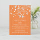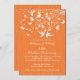 Convite de aniversário de casamento de pássaros de amor estiloso e moderno apresenta um par de pássaros de amor com um ramo de árvore adornado com borboletas e corações sobre um fundo de faixa fina laranja de outono. Belo para uma celebração de aniversário de casamento de 25, 30, 40, 45, 50 ou 60 anos. Disponível em nossa loja em uma grande variedade de opções de cores modernas e elegantes.