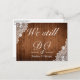 Cartão postal de convite de aniversário de casamento "Nós Ainda Fazemos". Estilo rústico com fundo de tábuas de madeira e decoração de renda branca. Mais itens estão disponíveis neste estilo em nossa loja. Você pode editar o design ainda mais, alterar cores, fontes e adicionar texto extra clicando no link "personalizar ainda mais".