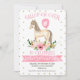 Convite de aniversário de Cavalo Floral convite de aniversário de cavalo, de abóbora, com faixa e arranjo floral, bem como pontos de folha de ouro falsos. Excelente para uma garotinha que ama cavalos.