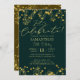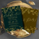 O design é tão elegante e moderno que apresenta uma esmeralda azul-aquarela e uma design de ouro, junto com um design de script manuscrito. Há também um ouro chic no convite de aniversário para complementar o design.