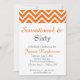 Um convite de excelente aniversário para qualquer senhora. Apresenta um padrão de cólon cor de laranja e branco no topo do convite. Você personaliza as informações da festa na frente em preto e laranja.