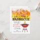 Este convite é para um churrasco de aniversário com um grande incêndio com chamas maciças.