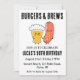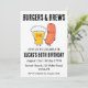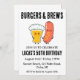 Celebre seu dia especial com um churrasco de quintal e muitas torcidas! Este convite de tema rústico apresenta um hambúrguer delicioso e uma cerveja fria, perfeita para uma festa de aniversário adulta. O design inclui as palavras-chave "animações", "cervejas" e "quintal" para ajudá-lo a encontrar o convite perfeito para a sua celebração.