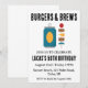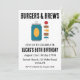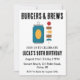 Celebre seu dia especial com um churrasco de quintal e muitas torcidas! Este convite de tema rústico apresenta um hambúrguer delicioso e uma cerveja fria, perfeita para uma festa de aniversário adulta. O design inclui as palavras-chave "animações", "cervejas" e "quintal" para ajudá-lo a encontrar o convite perfeito para a sua celebração.