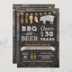 Convite para aniversário de 30 anos de saudações e cervejas, com conselho de giz e inscrição com idade personalizável.