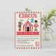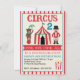 Este convite de aniversário de circo para crianças apresenta uma tenda de circo, um mestre de anéis, a reforma de ursos, palavras desenhadas, pipocas e banner. A área de texto é bege, com contorno azul de cor bege e e a borda consiste em um padrão de listras bege e vermelho. Eu queria criar uma nova coleção de temas de circo para a loja porque tem sido um tema popular no passado e divertido de design. O mesmo convite para design com área de fotos está disponível na loja. Este convite de aniversário de circo infantil é adequado para uma festa de menina ou de menino. Está pronto para personalizar.