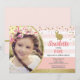 Convite de festa de aniversário elegante tema de coelhinha fofa rosa e dourado para aniversário de menina.