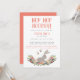 Um belo convite de aniversário para uma garotinha, perfeito para uma festa de primavera. Este design apresenta a frase "Salto salto hooray!" - uma diversão no tradicional "Hip hip hooray" , em caracteres de pincel com letra coral. Os detalhes da festa podem ser totalmente personalizados, e o fundo do convite tem uma bela imagem de uma tosse de flores silvestres, com um coelho sentado no meio, e abelhas voadoras. O verso tem um bloco de apoio coral. Este convite está disponível em outras cores.