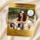 Crie sua própria colagem de fotos exclusiva. Use quatro, quatro das suas fotos favoritas. Personalize e adicione um nome e detalhes da parte. Escuro de fundo com aspecto dourado, texto branco. 1 folha = 1 convite impresso de borda a borda.