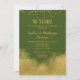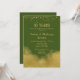 Um convite de aniversário de casamento elegante em Verde Oliva e dourado com poeira de confete dourado no topo e brilho dourado no fundo.