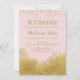 Um convite elegante de aniversário cor-de-rosa e dourado com poeira dourada confetti no topo e ouro no fundo.