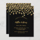 Um moderno, elegante e convite. Um fundo preto decorado com confete de ouro falso. Personalize e adicione um nome e detalhes. 1 folha = 1 convite impresso de borda a borda.