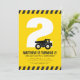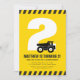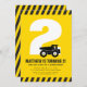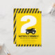 O entusiasmo está construindo! Prepare-se para uma celebração da construção! Este convite de aniversário para crianças, tema de construtores, preto e amarelo, apresenta um tronco de lixo em frente à idade da criança. A idade e a cor de fundo podem ser personalizadas.