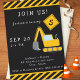 Celebre o dia especial do seu filho com este convite de aniversário de menino personalizado com um tema de construção adorável. O convite tem um escavador, um sinal de cedência, e um divisor de segurança do trabalho rodoviário. Há também listras amarelas e pretas. Adicione o nome, a idade, a localização da festa, a data, a hora e as informações de RSVP. Este convite de festas de criança faz um excelente personalizado para a sua festa de festa de aniversário tematizada!