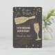 Convite de Chalkboard de Giz de Confete de Jantar de Aniversário de Casamento de Copo de Vinho com Diamante Dourado