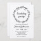 Convite de aniversário em papel kraft real, que apresenta uma coroa rústica de azeitona para um sentimento orgânico de lar rural. O design pode ser personalizado com diferentes fontes, cores ou tipos de papel.