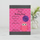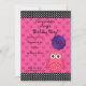 Convite de 5" x 7" com um plano de fundo de borboleta rosa-rosa giro, com faixas pretas com bolinhas brancas, um círculo de virilha roxo para mudar o ano de aniversário de 1rua, segundo, 3, 4, 5, 6, 7, 8, 9, 10, 11, 12, 13 14, 15, 16, 17, 18, 18, 18, 18, 18, 18, 18, 1 9, 20, 30, 40, 50, 60, 70, 80, 90 convite para festa de aniversário de temas corujais