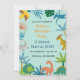 Faça o aniversário do seu pequeno rugir de alegria com este adorável convite de aniversário temático de dinossauro! Com dois dinossauros fofos usando chapéus de festa, balões coloridos e detalhes divertidos, este convite é perfeito para meninos e meninas. Fácil de personalizar com o nome da criança, data e detalhes da festa. Um design divertido e alegre que define o tom para uma celebração de aniversário de dinossauro inesquecível.