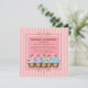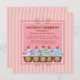 Um design delicioso para o convite de festas de sua aniversariante! Cinco cupcakes são perfeitos para um 5 de aniversário, mas funciona para qualquer idade também. Em listras de mocha rosa e pálidas, com borda curva, este design é o palco para a extravagância de aniversário da sua menina!