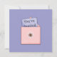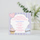 convites de aniversário de meninas doces feitos em listras azuis e brancas, com um corte branco de um cupcake como área de texto. Gráficos de um cupcake rosa bonito e coração decoram a frente. A parte de trás do convite é feita em azul-periwinkle sólido com gráficos de um envelope cor-de-rosa com leitura de texto gráfico Você é convidado. Personalize o texto rosa e azul, na frente, para o dia especial da sua filha.