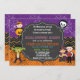 Convite de festas de fantasia de Halloween imprimível com fundo misto engraçado e colorido com redes de aranha. Crianças em suas fantasias de Halloween estão prontas para ir a Trick Or Tratating. Um convite perfeito para qualquer criança nesta época especial do ano.