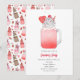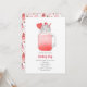 Um convite de festa de Dia dos Namorados com uma ilustração de um milkshake extremo decorado com biscoito em forma de coração, confeitos e cereja.