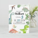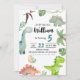 Celebre o aniversário do seu filho com esses convites de festas de aniversários bonitinhos de dinossauro! Com adoráveis e coloridos dinossauros pintados à mão, incluindo T-Rex, Pterodátilo, Stegossauro, Tricerátops e Brontosauro! Perfeito para a pequena cara ou garota que ama dinossauros. Voltar tem um padrão striped correspondente.