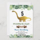 Convite de aniversário de dinossauro de ouro