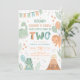 Convite De Aniversário De Dinossauro Dois. Um segundo Bonito Dino Convide. Pastel Greenery Stomp Chomp & Chew Boy Modern Digital Kids Party. D2