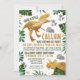 Convite de aniversário de Dinossauro Dourado Verde