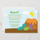 O convite para a festa de aniversário deste rapaz tem um design de dinossauro bonito e colorido. Há um vulcão na parte inferior direita com três dinossauros em frente, com um amarelo voando. Você pode personalizar facilmente as informações de sua parte à esquerda. Gráficos pelo Stockberry Studio em Mygrafico com