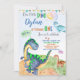 O convite de aniversário do Dinossauro para a festa de dino-mite do primeiro aniversario Dino. Stomp Chomp Growth e Rawr! Este belo convite para a primeira festa de aniversário de 1rua com vários dinossauros ruidosos, balões e banner de festas no topo. Basta editar este modelo fácil de usar no menu Personalização para torná-lo especial.