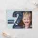 Um convite moderno para o segundo aniversário do seu filho, com 2 em quadro-negro e pontos azuis claros.