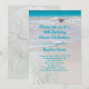 Convites de festas de aniversários de areia para uma mulher adulta. Plano de fundo da praia com bonito texto azul-mar. Personalizar para um aniversário ou qualquer ocasião.