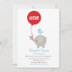 Elefante de cinza azul doce e pastel com balão vermelho. Perfeito para o primeiro convite de aniversário