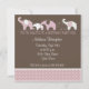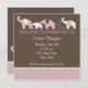 Este convite de aniversário tem uma fila de elefantes sobre as palavras "Você é convidado para uma Festa de aniversário" e então você adiciona suas informações com a ferramenta zazzle. Você pode adicionar uma mensagem na parte traseira da placa ou remover. O envelope vem no tamanho exato deste convite.