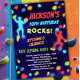 Crie seus próprios convites de festas de aniversários de escalada para crianças com cores divertidas do arco-íris.
