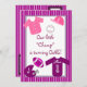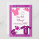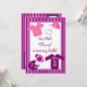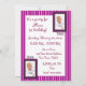 O convite para o tema esporte roxo e cor-de-rosa para meninas no primeiro aniversário. Design apresenta um fundo púrpura e branco. Há uma área retangular em centro branco com ilustrações gráficas de material esportivo e roupas para meninas em tons de rosa e roxo. Há uma camisa de basebol rosa e branca, um chapéu de basebol rosa e uma bola de basebol com pontos cor-de-rosa. Há também uma camisola de futebol roxa que pode ser personalizada com o nome do seu filho, um capacete de futebol roxo que pode ser personalizado com o início do seu filho, e um futebol rosa e roxo. O texto na frente está em fonte roxa divertida e pode ser personalizado para atender às suas necessidades. O verso do convite tem o mesmo fundo púrpura e uma mesma área sólida branca. Há duas pequenas áreas retangulares com trim roxo para adicionar THEN e AGORA fotos de seu filho. Todo o texto está na mesma fonte roxa que na frente e pode ser totalmente personalizado com o seu próprio texto.