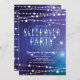 Festa de aniversário de sono com uma fonte de estrela cintilante colocada sobre um fundo azul da meia-noite adornada com terra de estrelas brancas. Sacudir nosso convite moderno para ver uma coordenação de volta para um toque especial extra.