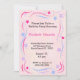 Fundo cor-de-rosa com borda estelar e espiral. Convite de aniversário colorido. Convite perfeito para crianças e adultos. Personalize com os detalhes do seu partido.