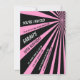 "Você é convidado para uma festa fora deste mundo para..." Um legal padrão geométrico de starburst, rosa e preto, com raios de luz. Este modelo convite de aniversário é excelente para crianças e adultos. Um convite para uma festa na zona do crepúsculo.