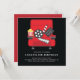 Convite de aniversário de cinema único com assentos vermelhos no teatro em um fundo preto com uma coordenação vermelha para um toque especial extra.