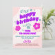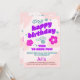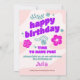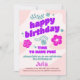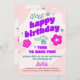 Convite de aniversário de flores roxas, rosa e rosa. Nome, hora e local editáveis.