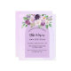 Um fundo violeta, lavanda, colorido d'água e uma armação de arco. Decorado com flores violetas e púrpuras de cor aquosa e verde. Personalize e adicione seu nome e detalhes da festa. 1 folha de papel = 1 convite impresso borda a borda.