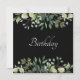 Negro elegante com Convites de aniversário de flores verdes para belos e graciosos aniversários e celebrações.