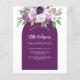 Um fundo violeta, lavanda, colorido d'água e uma armação de arco. Decorado com flores violetas e púrpuras de cor aquosa e verde. Personalize e adicione seu nome e detalhes da festa. 1 folha = 1 convite impresso de borda a borda.