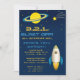 Este moderno e divertido convite de aniversário de foguete externo com um foguete de navio e planeta num fundo céu estrelado de estrela azul escuro é o perfeito para qualquer festa de aniversário ou evento especial de estilo. Personalize com seu próprio texto especial e use-o para a parte ou evento de sua escolha. Alguns gráficos do design Prettygrafik na loja etsy.com/shop/Prettygrafikdesign