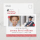 Convites modernos e elegantes para festa de formatura e cartões-postais de anúncios. O modelo de design tem espaço para 2 fotos, perfeito para incluir uma foto da infância ao lado da foto atual do formando. Personalize o design com suas fotos personalizadas, nome, detalhes da formatura e convite para a festa de formatura no verso. Ótimo para festa de formatura do ensino fundamental, médio ou faculdade. Use as ferramentas de design para alterar as fontes e cores do texto e criar um design único e exclusivo!