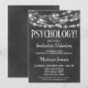 Um convite divertido de aniversário de formatura em Psicologia com quadro negro preto e branco com luzes brilhantes no topo.